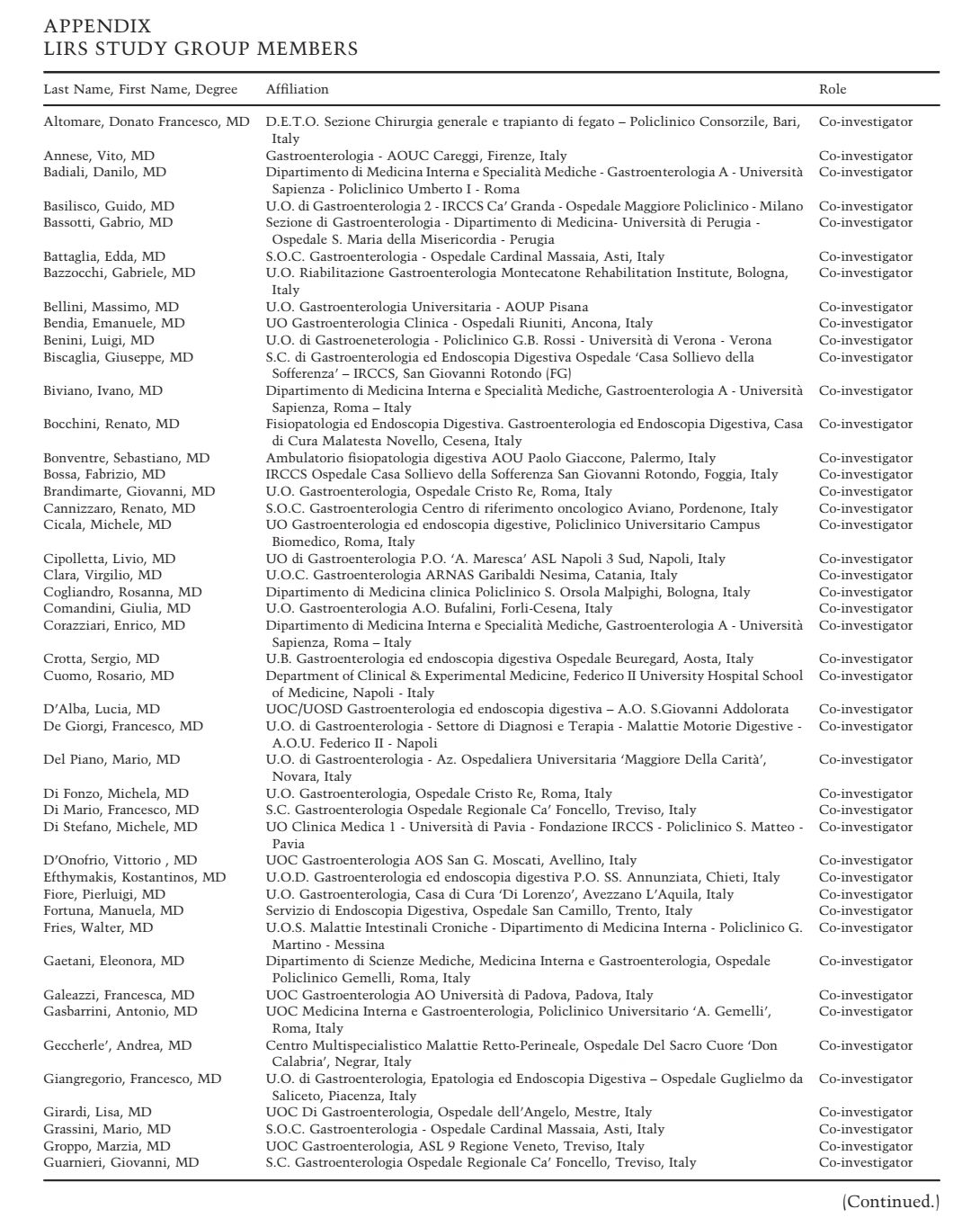 Thirty-nine Italian referral centers for gastrointestinal disorders joined the laxative inadequate relief study (LIRS),12 a two-wave survey. In the first wave, LIRS 1, we enrolled 878 consecutive outpatients with chronic non-organic constipation from September through December 2011. In the second wave, LIRS 2, we enrolled 1325 outpatients in the same centers, from March 2012
