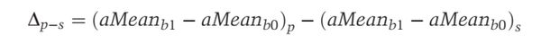 where aMeanb1 indicate the adjusted mean for patients reporting bloating; aMeanb0 indicate the adjusted mean for patients reporting no bloating. The suffix p indicates the group of patients with no previous history of organic diseases potentially associated with constipation. The suffix s indicates the group of patients with previous history organic diseases potentially associated with constipation. A statistically significant interaction and a positive Dp-s would suggest that the inclusion of patients with organic diseases potentially associated with constipation may lead to underestimating the association between bloating and PRO.