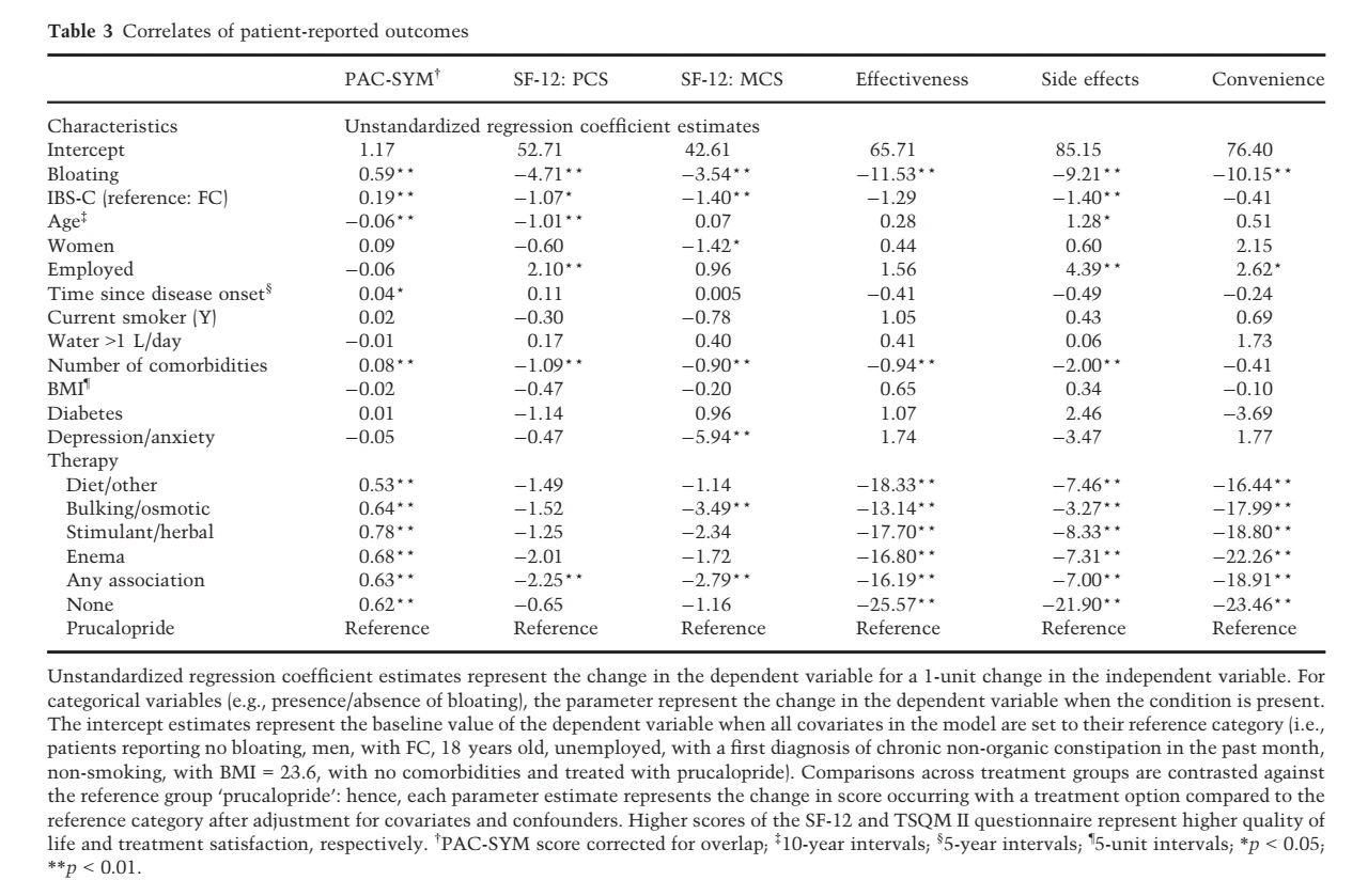 • Bloating was associated with poorer health-related quality of life and treatment satisfaction after adjustment for potential confounders and other constipation-related symptoms.