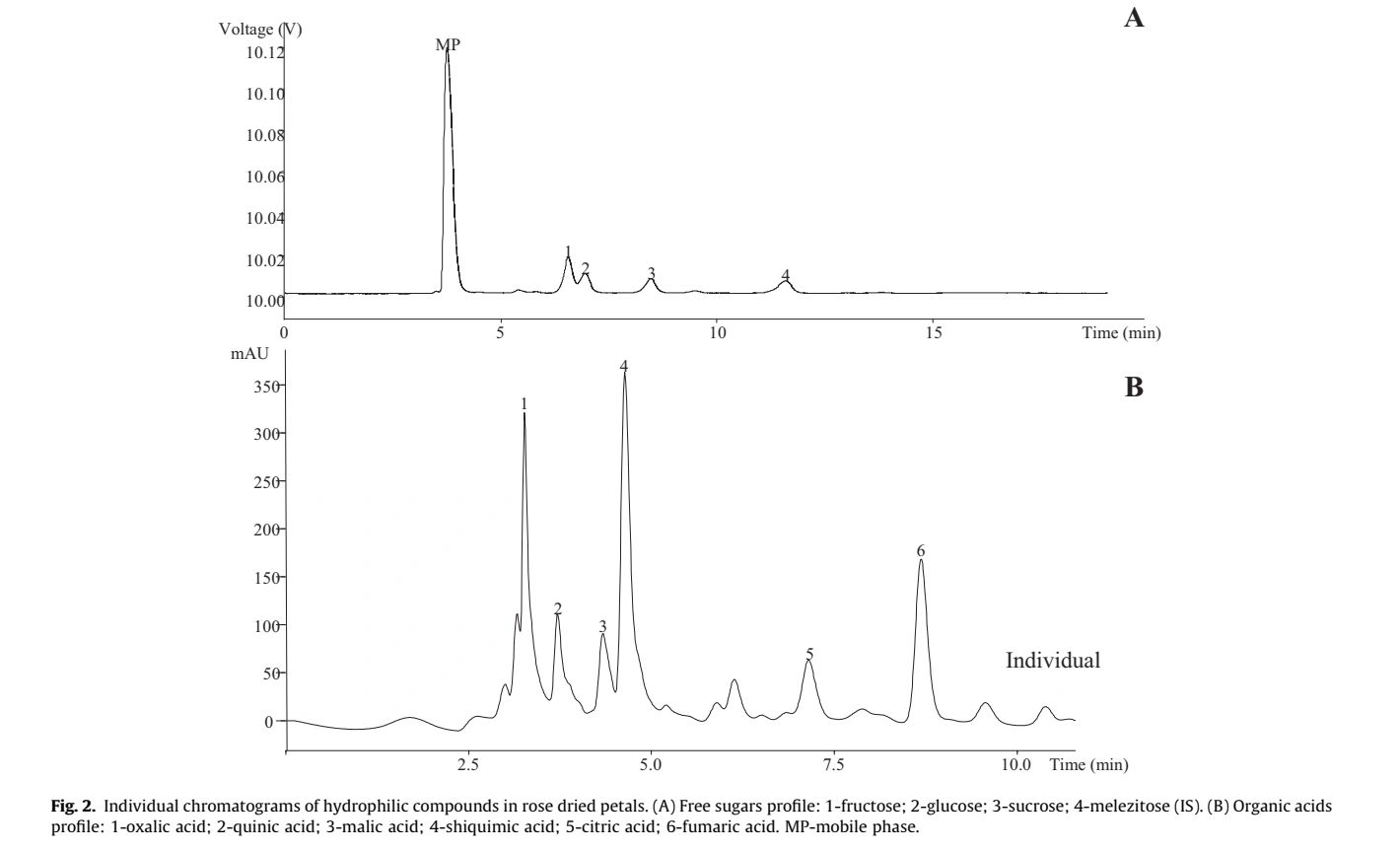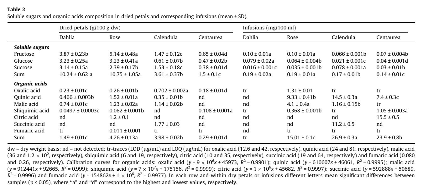 the petals and infusions. Rose petals and calendula infusions gave the highest content of organic acids,